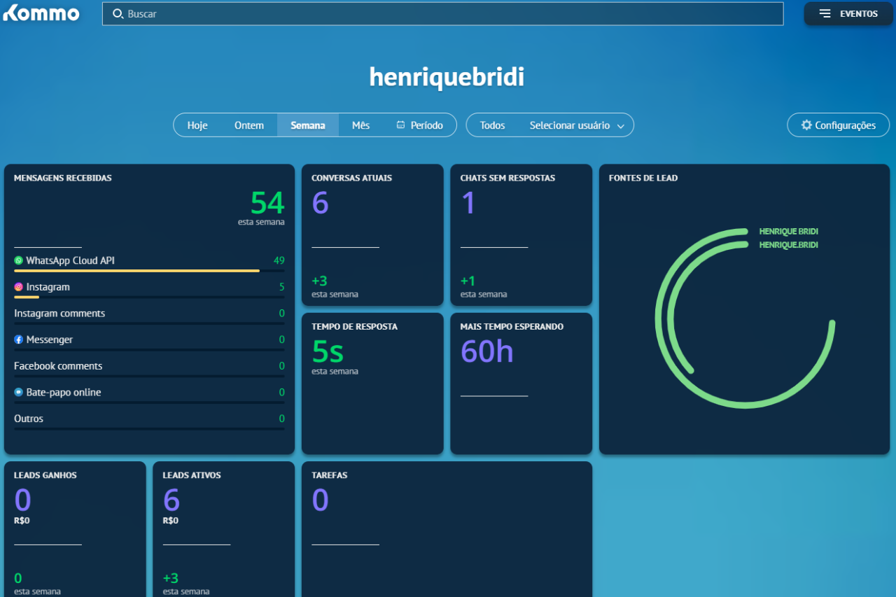 Centralize WhatsApp, Instagram e e-mail em uma única caixa de entrada ligada ao Kommo. Histórico unificado, menções internas, SLAs e prioridade por fila. Cada conversa vira lead, tarefa ou negócio no funil correto, com rastreabilidade e menos atrito.